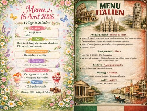 Par admin jean-baptiste-dumas-salindres, publié le mardi 2 septembre 2025 16:57 - Mis à jour le jeudi 16 avril 2026 15:32DU LUNDI 13/04 au 07/05 En bas de page Allergènes pour les semaines à venir -
