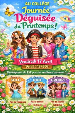 Par admin jean-baptiste-dumas-salindres, publié le mardi 14 avril 2026 14:35 - Mis à jour le jeudi 16 avril 2026 15:33🔥🎭 Ready pour le défi du printemps ? Montre-nous ton meilleur déguisement ! -